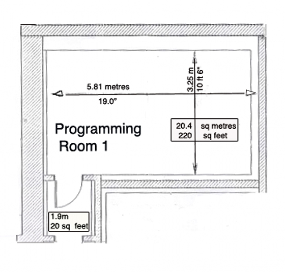 Control Room: 5.8m x 3.2m (19′ x 10.5′)